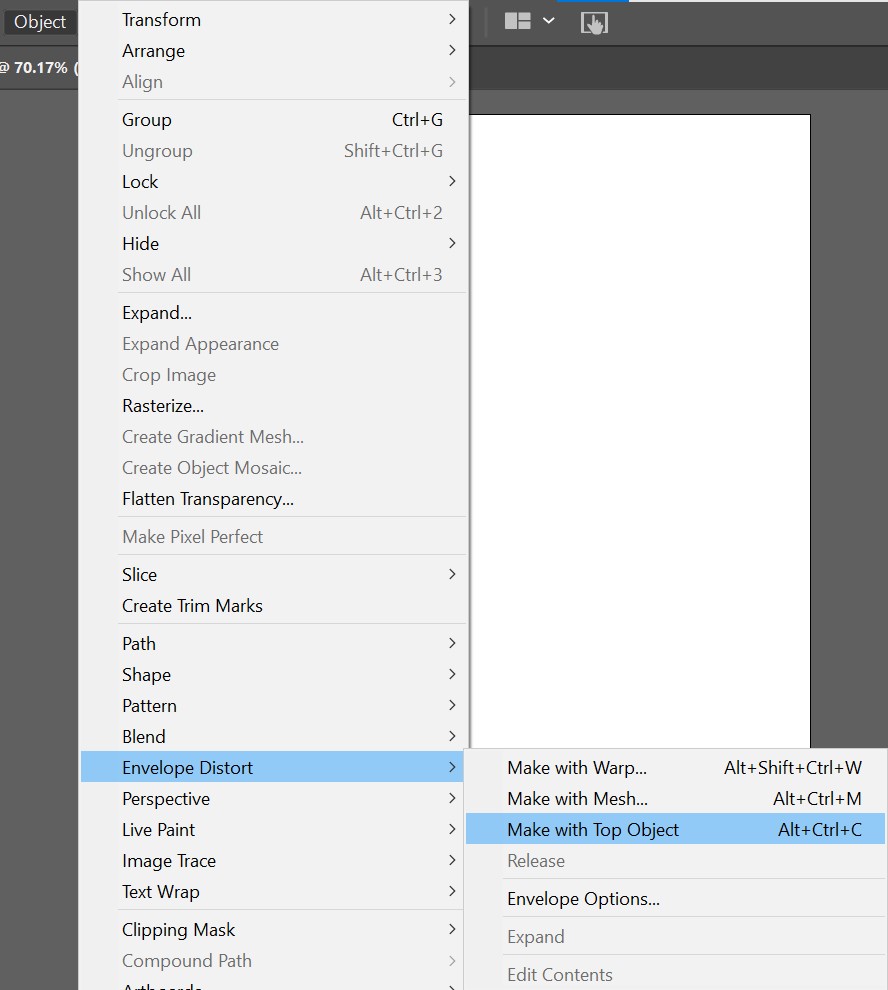 Step 3: With both objects selected, navigate to ‘Object > Envelope Distort > Make with Top Object.’.